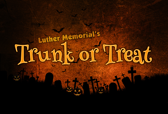 October 25th from 1:00pm until 3:00pm. Dare to brave the elements while ‘Trick or Treating in’ safety at Luther Memorial’s Trunk-Or-Treat. Where you’re sure to discover a treasure trove of sweet delights & the occasional ghoul. Beware!